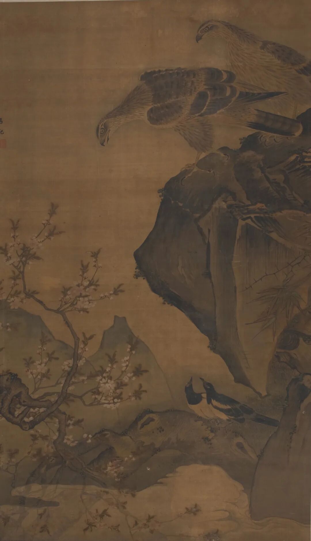 明吕纪鹰石中堂图轴